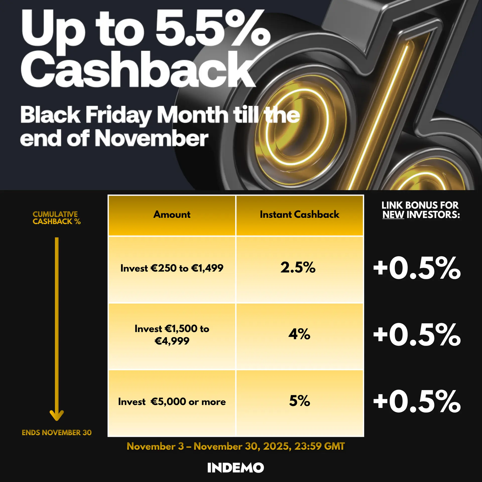 La plateforme Indemo a été particulièrement active, en annonçant trois nouvelles d'importance majeure : une offre de cashback agressive pour le Black Friday, une nouvelle manière de suivre les investissements ("Flow 2.0"), et surtout, une refonte complète de sa structure d'investissement ("1 Note : 1 Dette").